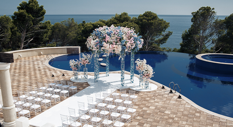 Créez une ambiance magique avec une salle donnant sur la plage, baignée par les teintes dorées du soleil couchant. Un lieu parfait pour un mariage romantique, une cérémonie laïque ou une soirée privée au parfum d’été. Cadre idyllique garanti pour vos photos et souvenirs.